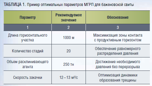 2. Эффективность технологии: оптимизация числа стадий, объема и скорости закачки стимулирующих жидкостей обеспечивает равномерное сопротивление трещин искусственной системы (SRV), что приводит к увеличению дебита на 30–50 %.