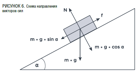 N – сила нормальной реакции опоры, которая, в свою очередь, рассчитывается по формуле