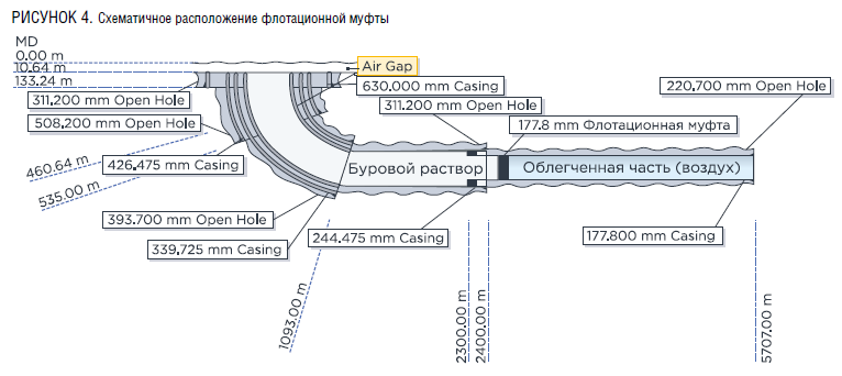 скважин фазы 2 стало понятно, что только применение технологии «плавающего» хвостовика позволит достигнуть реализации геологических задач. Эта технология, известная с 90-х годов XX века, является альтернативным методом спуска, позволяющим снижать вес обсадных колонн, тем самым уменьшая продольное сопротивление перемещению.
