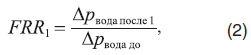 Коллектив авторов предлагает применять четырехфакторную оценку результатов фильтрационных экспериментов на линейных моделях, т.е. дополнительно определять фактор сопротивления (FR2) при прорыве состава ВПП водой, фактор остаточного сопротивления (FRR2) при установлении перепада давления после форсированных режимов фильтрации. Оцениваемые параметры рассчитывались по формулам: