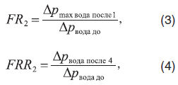 где Δpmax вода после 1 – максимальный перепад давления по воде на базовом расходе при прорыве состава ВПП, Па; Δpвода после 4 – установившийся перепад давления по воде на базовом расходе после форсированных режимов закачки, Па.